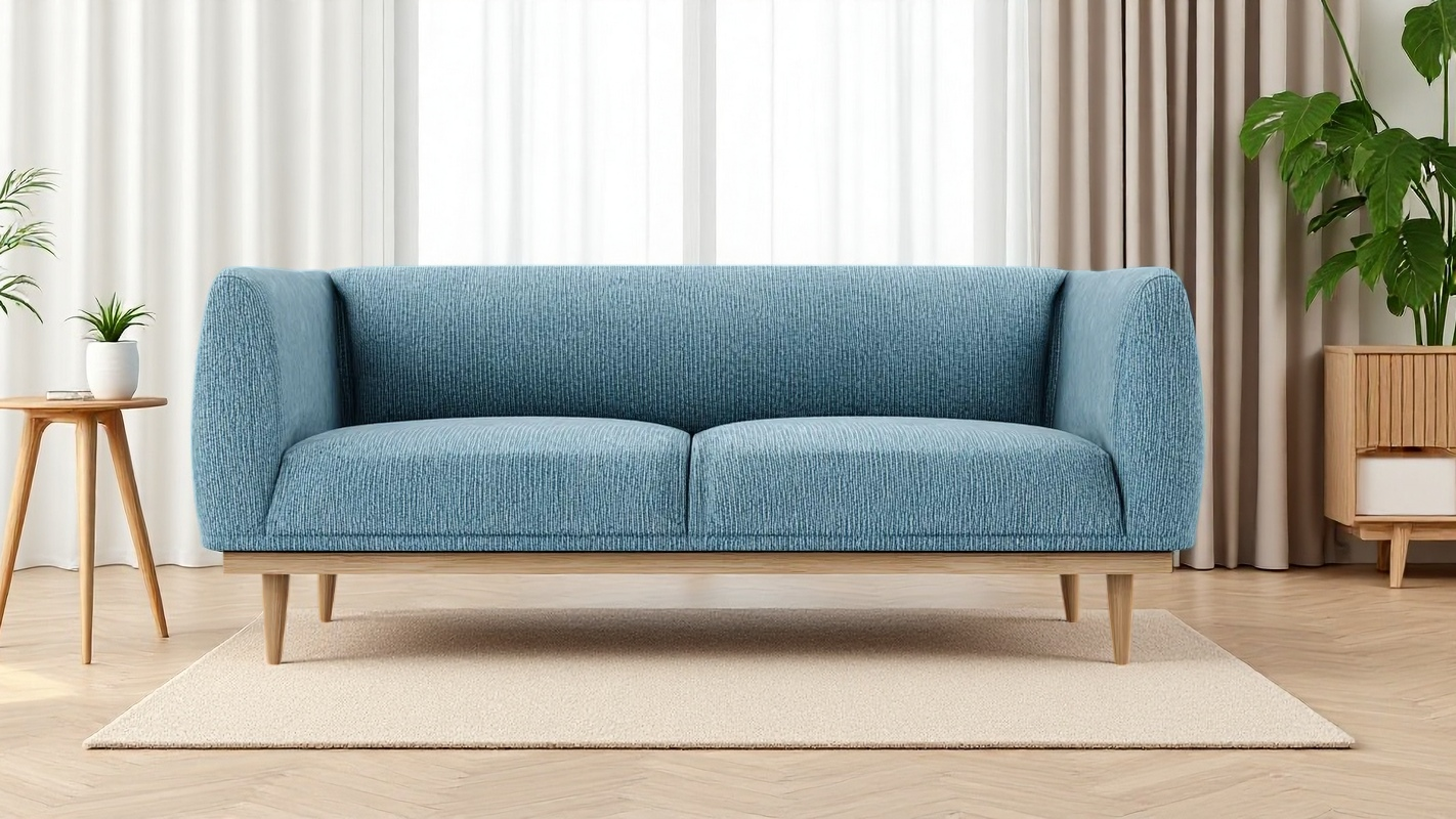 Le revêtement est en tissu beige à texture douce, agréable au toucher et facile à assortir. La structure interne assure une bonne stabilité, complétée par une base robuste qui garantit un maintien fiable.